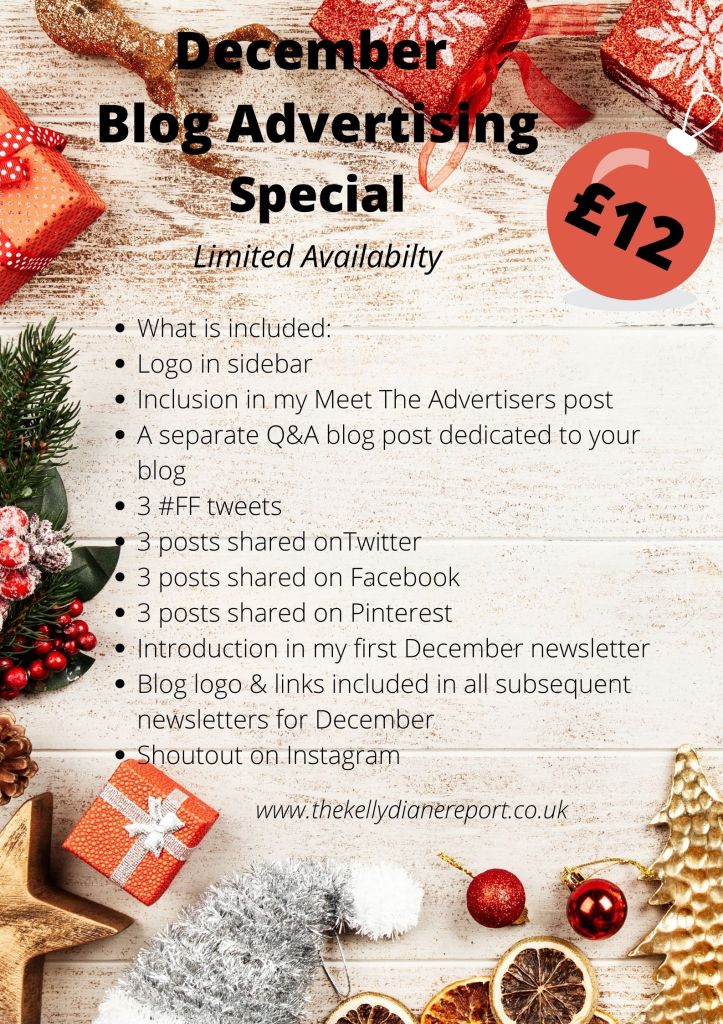 With Christmas not that far away, I’m here to bring you my December Blog Advertising Special Offer. After great success with my regular monthly advertiser slots this year, I wanted to bring you something special. There is limited space available, so if you are interested, please get in touch as soon as possible.